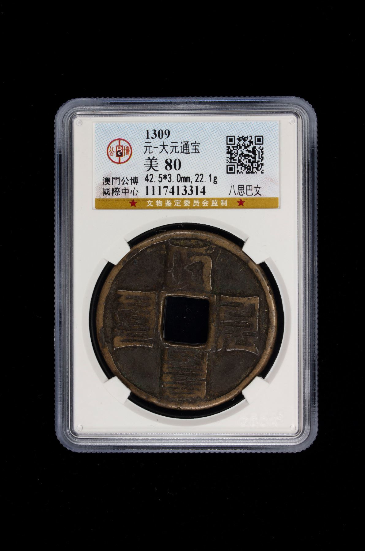 YUAN: Da Yuan, 1310-1311, AE 10 cash (22.34g), H-19.46, ta üen tong baw in Mongol 'Phags-pa script (da yuan tong bao in Chinese), Graded 80 by GBCA Grading Company. Külüg Khan (Da Yuan), born Khayishan, meaning "wall" in Mongolian, was an Emperor of the Yuan Dynasty and is regarded as the seventh Great Khan of the Mongols in Mongolia. His name means "warrior Khan" or "fine horse Khan" in the Mongolian language.