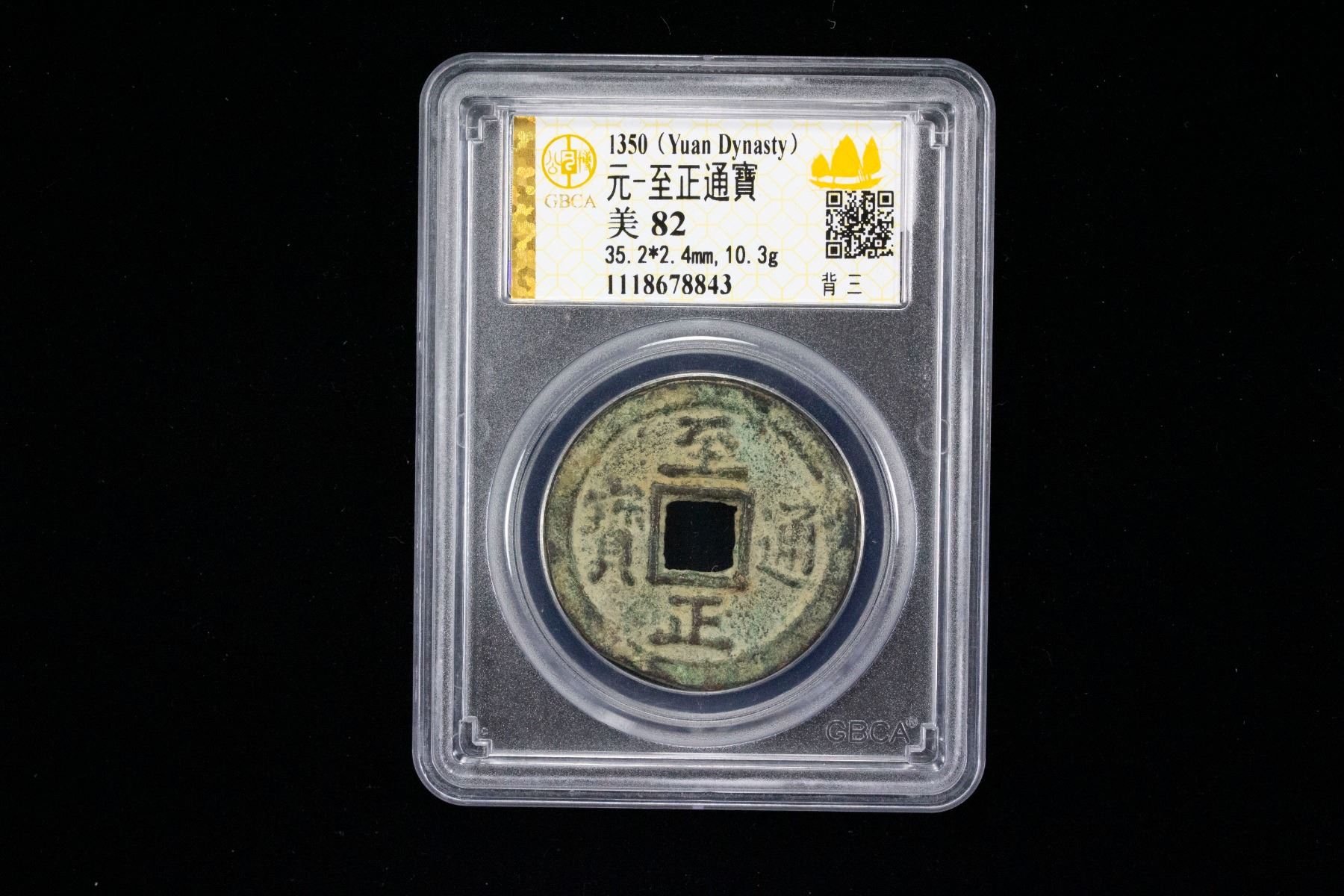 YUAN: Zhi Zheng, 1341-1368, AE 3 cash (10.3g), H-19.109, Mongolian 'Phags-pa sam above and Chinese san (three) below on reverse for denomination, graded 82 by GBCA Grading Company, VF, ex Dr. Dirk Löer Collection. Toghon Temür, also known by the posthumous name Shundi bestowed by the Hongwu Emperor of the Ming dynasty, was a son of Kus'ala. Toghon Temür ruled as emperor of the Yuan dynasty and is considered the last Khagan of the Mongol Empire. He bore the period titles Yuan Tong 1333-1334, Zhi Yuan 1335-1340, and Zhi Zheng 1341-1368.