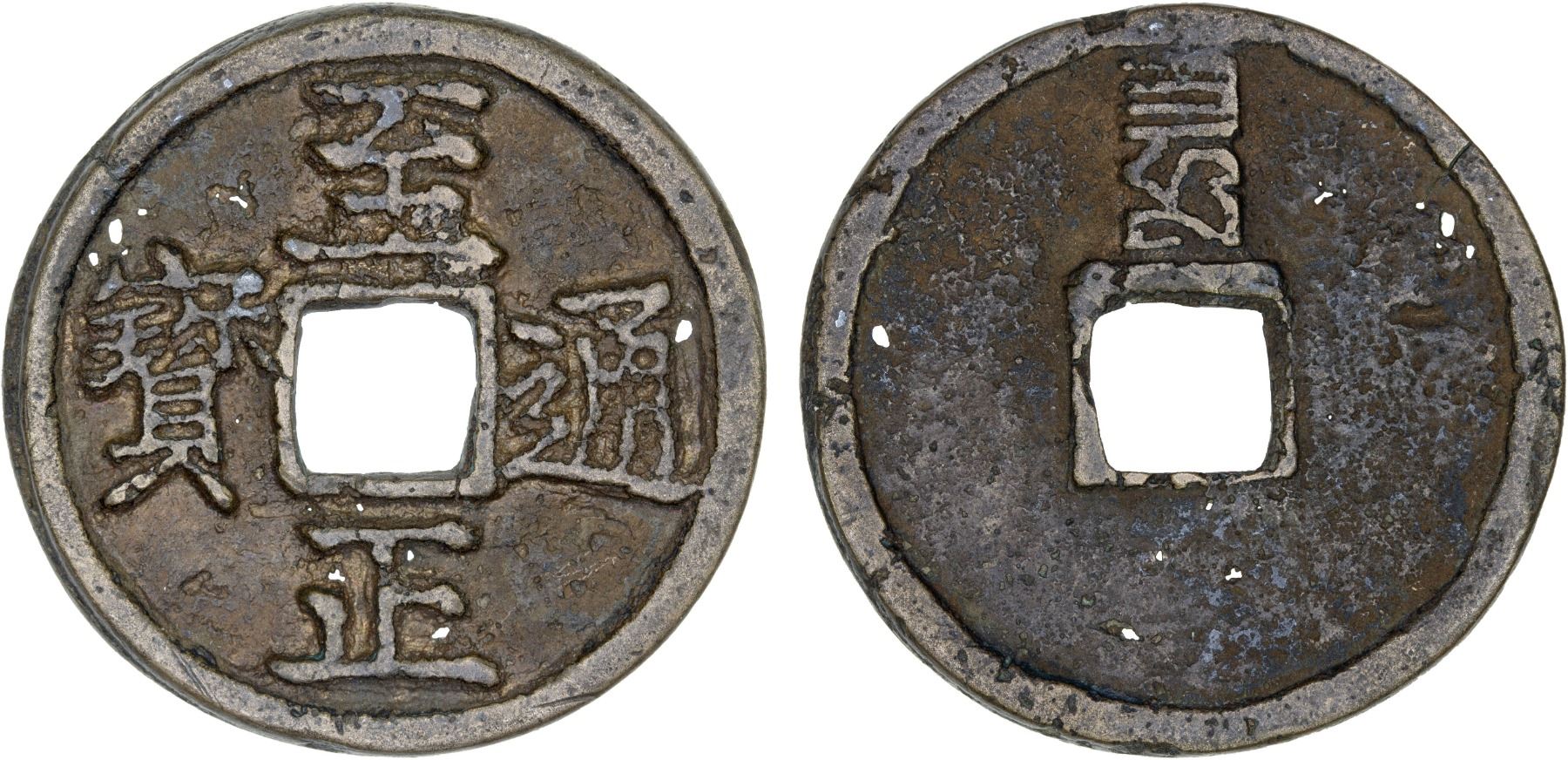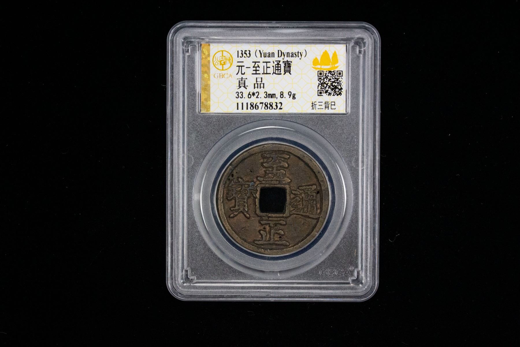YUAN: Zhi Zheng, 1341-1368, AE 3 cash (8.9g), H-19.109, Mongolian 'Phags-pa sam above and Chinese san (three) below on reverse for denomination, graded 'Genuine' by GBCA Grading Company, XF, ex Dr. Dirk Löer Collection. Toghon Temür, also known by the posthumous name Shundi bestowed by the Hongwu Emperor of the Ming dynasty, was a son of Kus'ala. Toghon Temür ruled as emperor of the Yuan dynasty and is considered the last Khagan of the Mongol Empire. He bore the period titles Yuan Tong 1333-1334, Zhi Yuan 1335-1340, and Zhi Zheng 1341-1368.