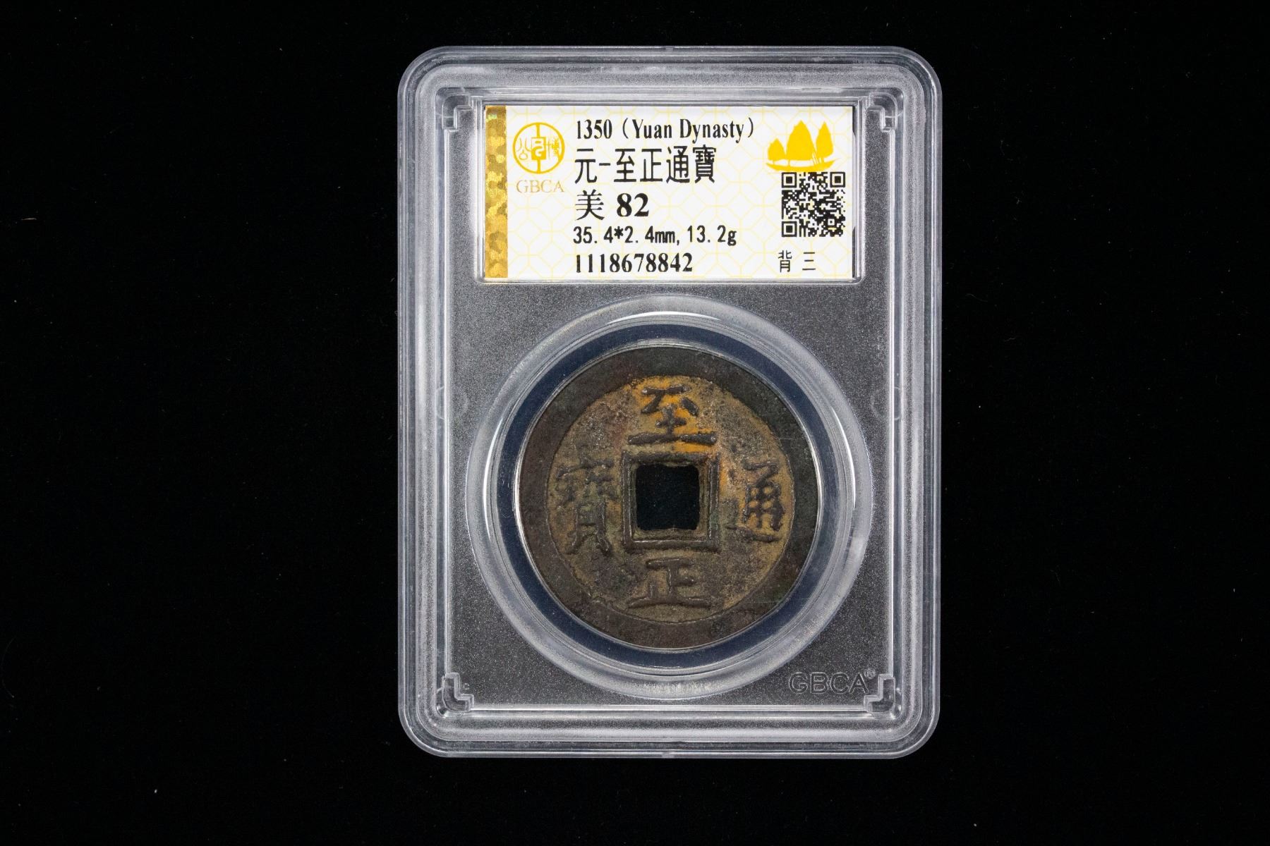 YUAN: Zhi Zheng, 1341-1368, AE 3 cash (9.3g), H-19.109, Mongolian 'Phags-pa sam above and Chinese san (three) below on reverse for denomination, graded 82 by GBCA Grading Company, VF, ex Dr. Dirk Löer Collection. Toghon Temür, also known by the posthumous name Shundi bestowed by the Hongwu Emperor of the Ming dynasty, was a son of Kus'ala. Toghon Temür ruled as emperor of the Yuan dynasty and is considered the last Khagan of the Mongol Empire. He bore the period titles Yuan Tong 1333-1334, Zhi Yuan 1335-1340, and Zhi Zheng 1341-1368.
