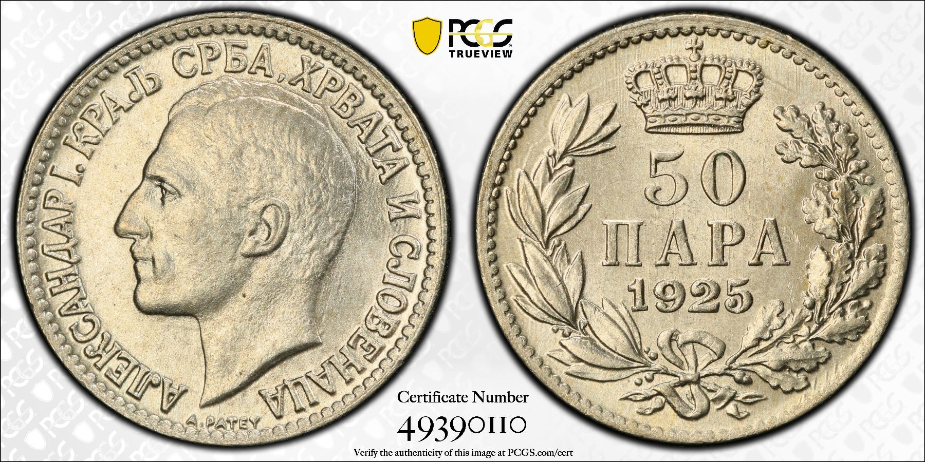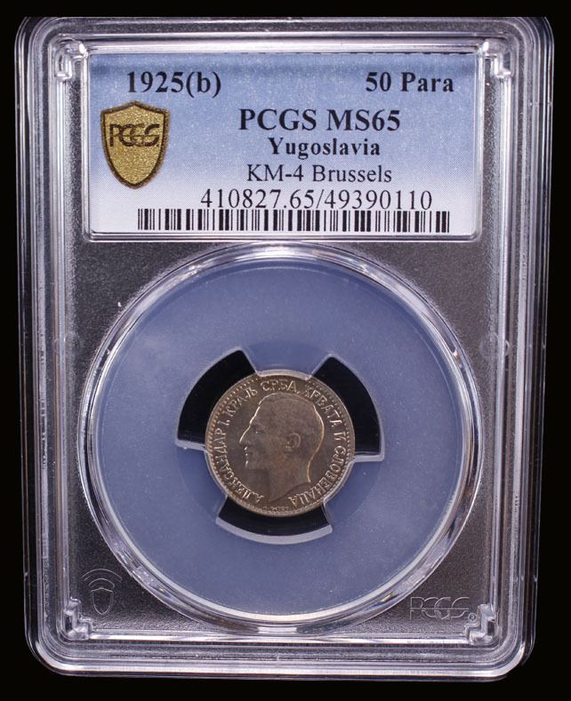 YUGOSLAVIA: Alexander I, 1921-1934, 50 para, Brussels, 1925, KM-4, great luster and eye appeal, one-year type, PCGS graded MS65.