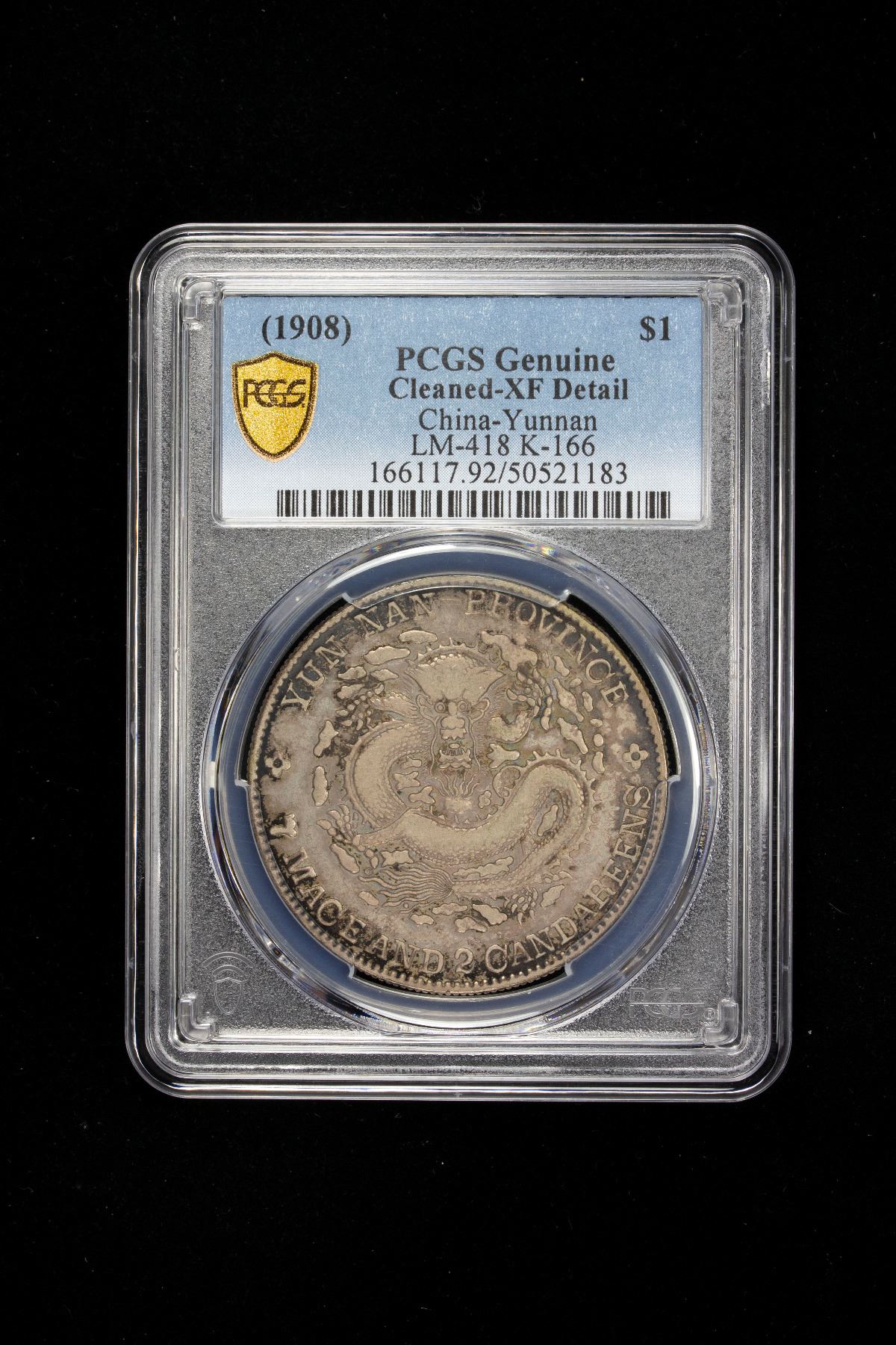 YUNNAN: Kuang Hsu, 1875-1908, AR dollar, Kunming, ND (1908), Y-254, L&M-418, K-166, WS-0659, cleaned, PCGS graded XF details, ex Almer H. Orr III Collection.