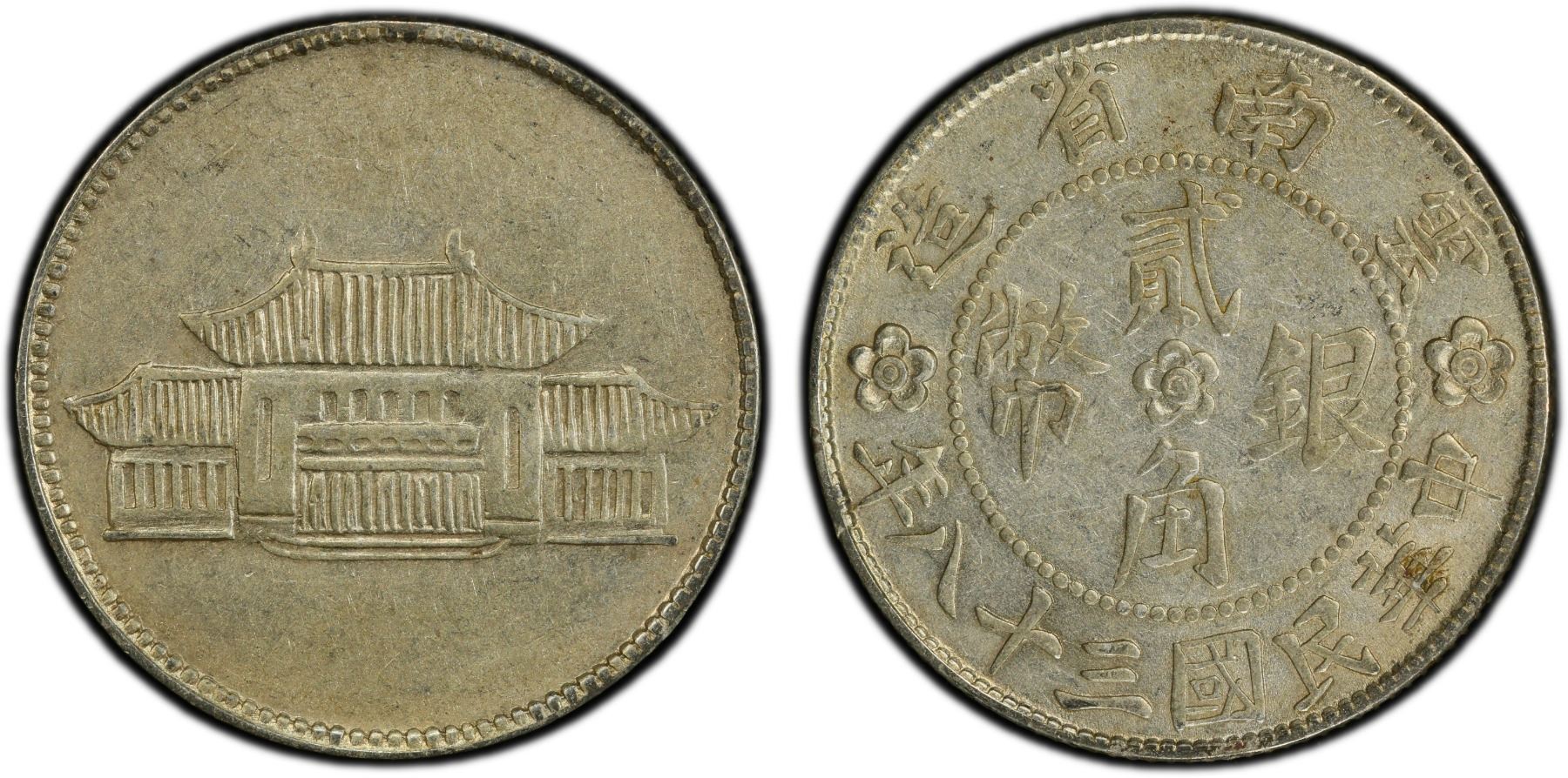YUNNAN: Republic, AR 20 cents, year 38 (1949), Y-493, L&M-432, K-774, PCGS graded AU55.