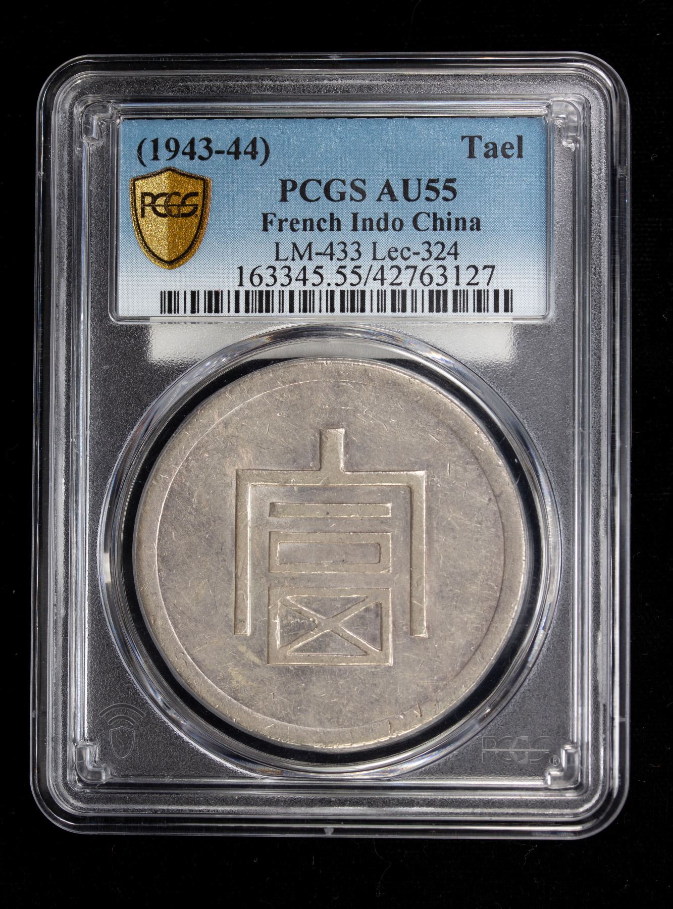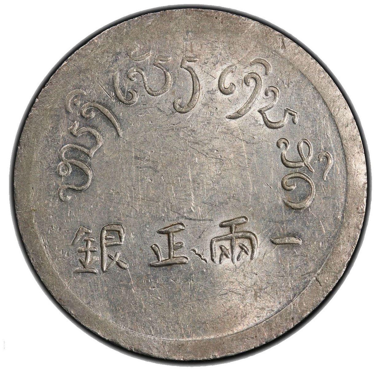 YUNNAN: Republic, AR liang (tael), ND (1943-44), KM-A2a, L&M-433, Lec-324, Kann-940, struck for use in the French Indo-China opium trade, Chinese character fu ("wealth") at center // denomination in Laotian and Chinese, bold lustrous strike! PCGS graded AU55.