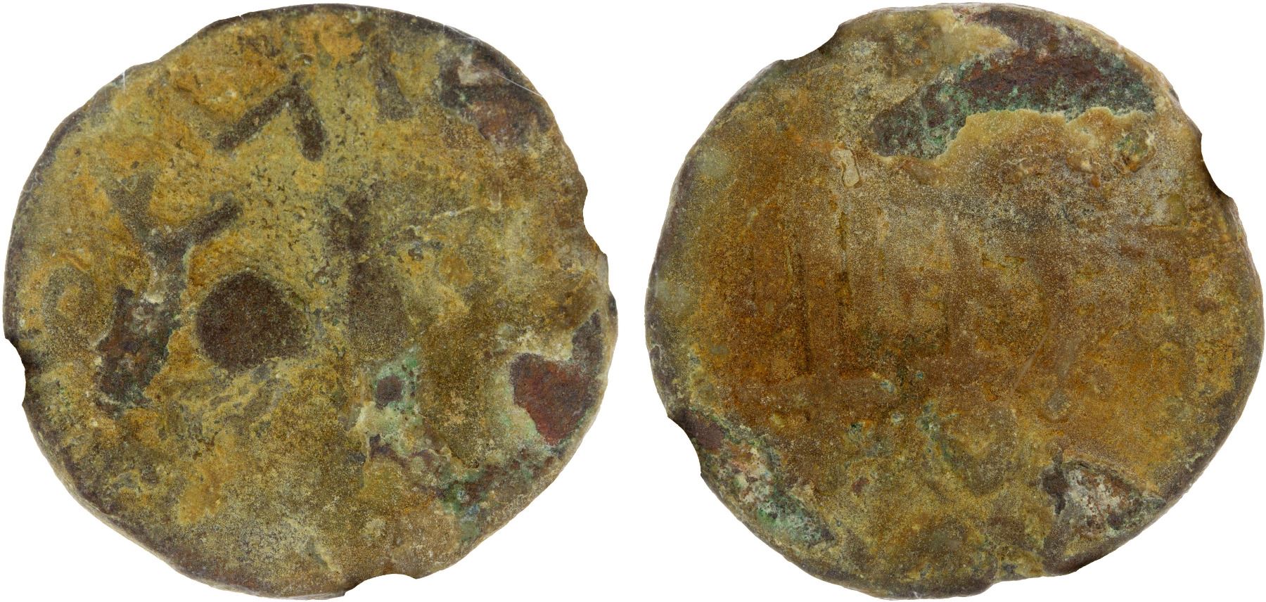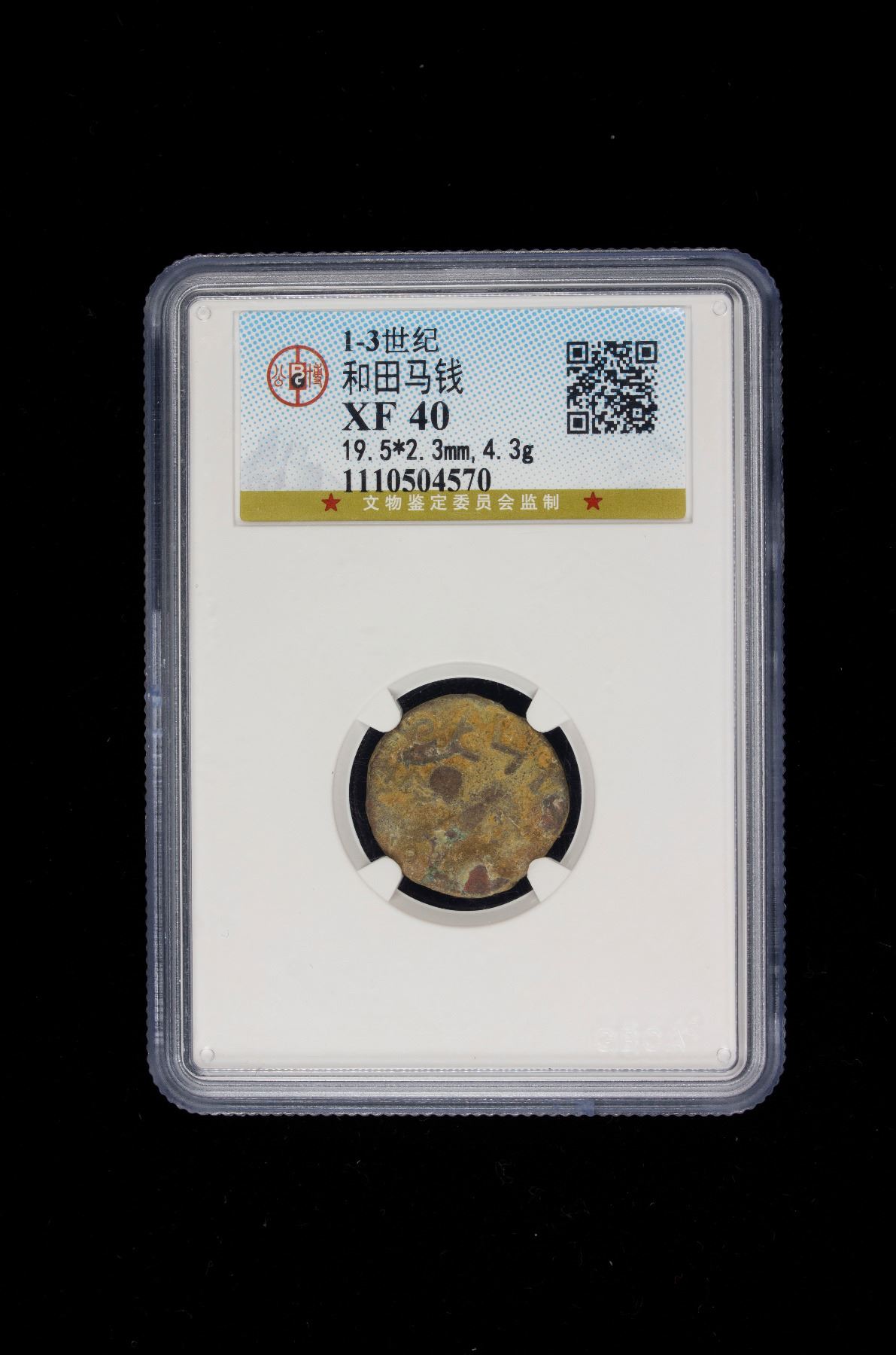 YUTIAN KINGDOM: "Gurgamoya", ca. 200 AD, AE 6 zhu (4.30g), cf. Zeno-231471, Xinjiang Numismatics-053, Khotan, Sino-Kharosthi series: horse right, Kharosthi maharaya yidiraya gurgamoya ("Great King, King of Yutian (Khotan), Gurgamoya") // Han Dynasty Chinese inscription, crudely written Chinese liù / zhu qian ("6 zhu currency"), graded by GBCA as EF40.