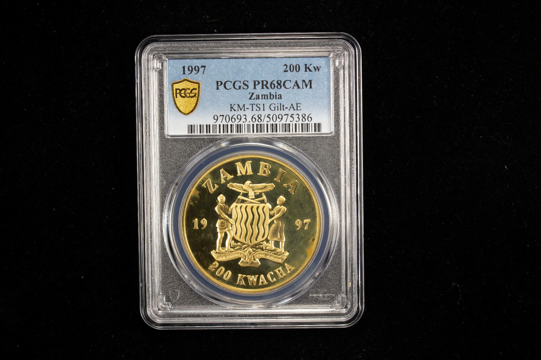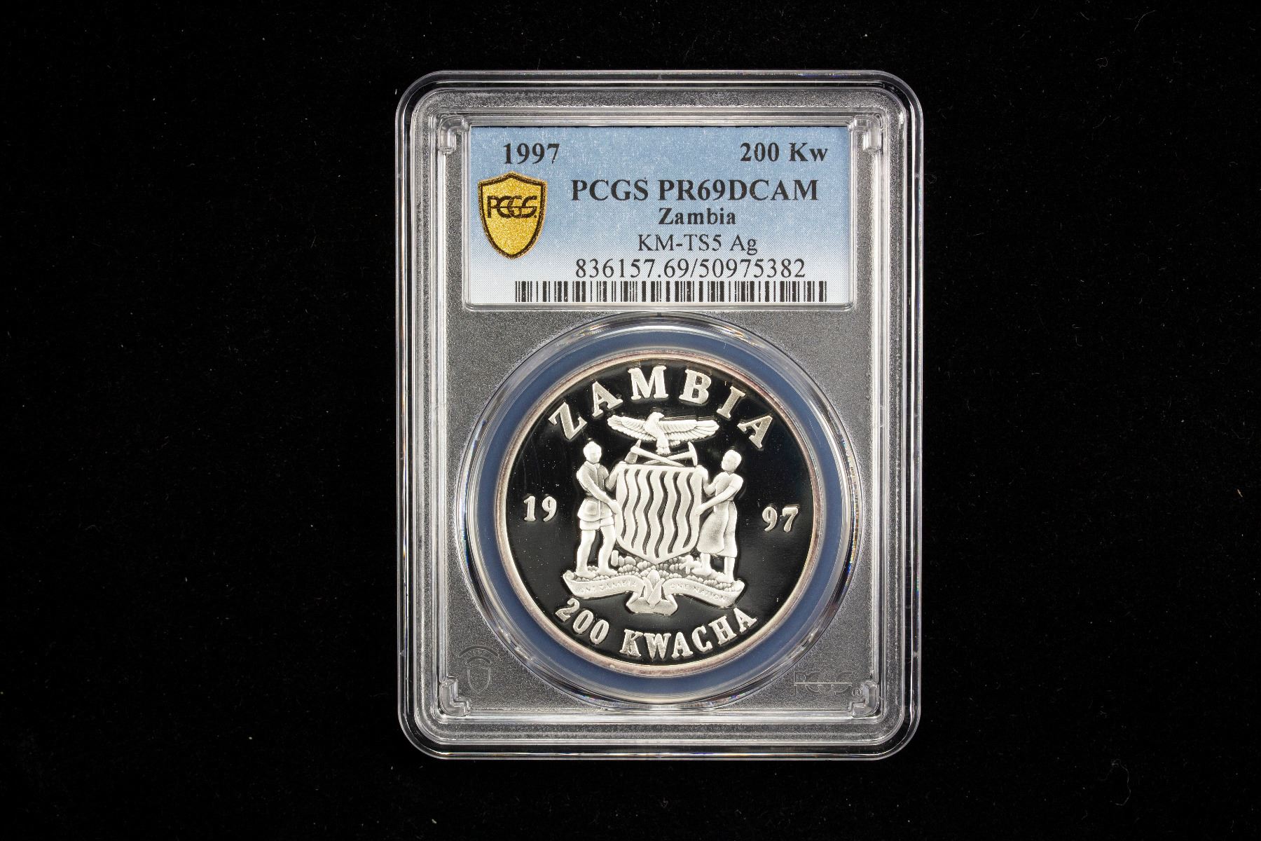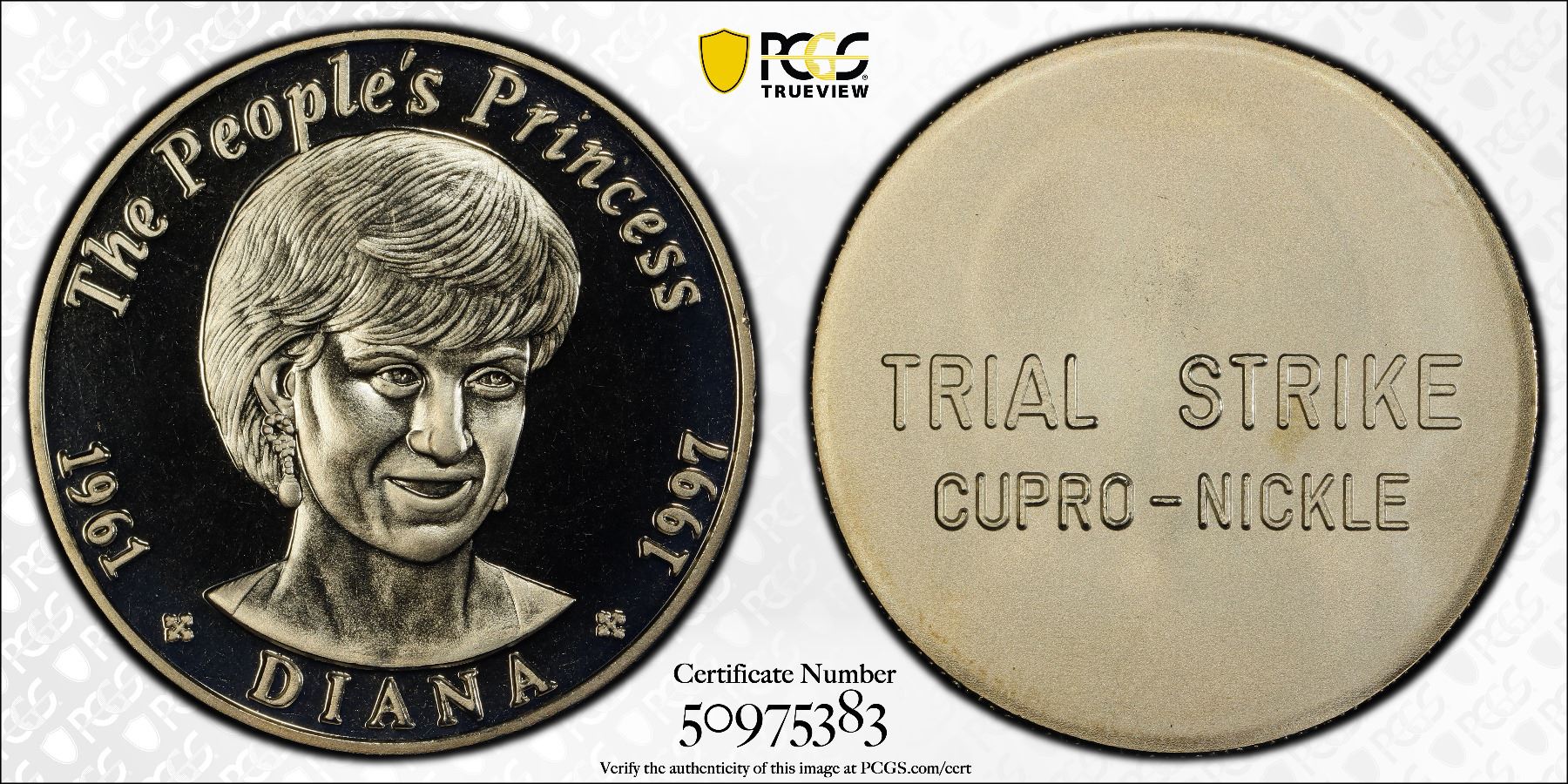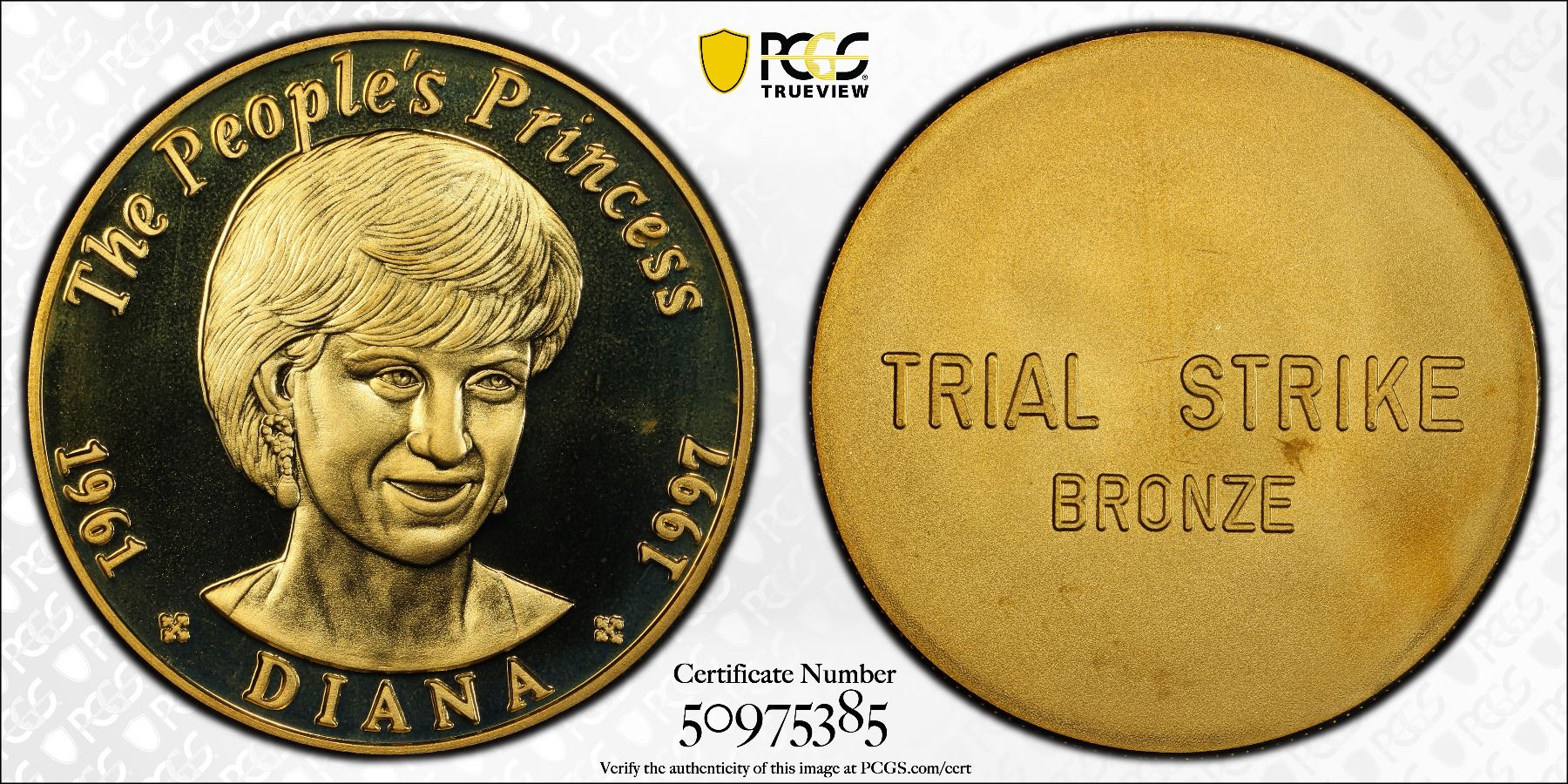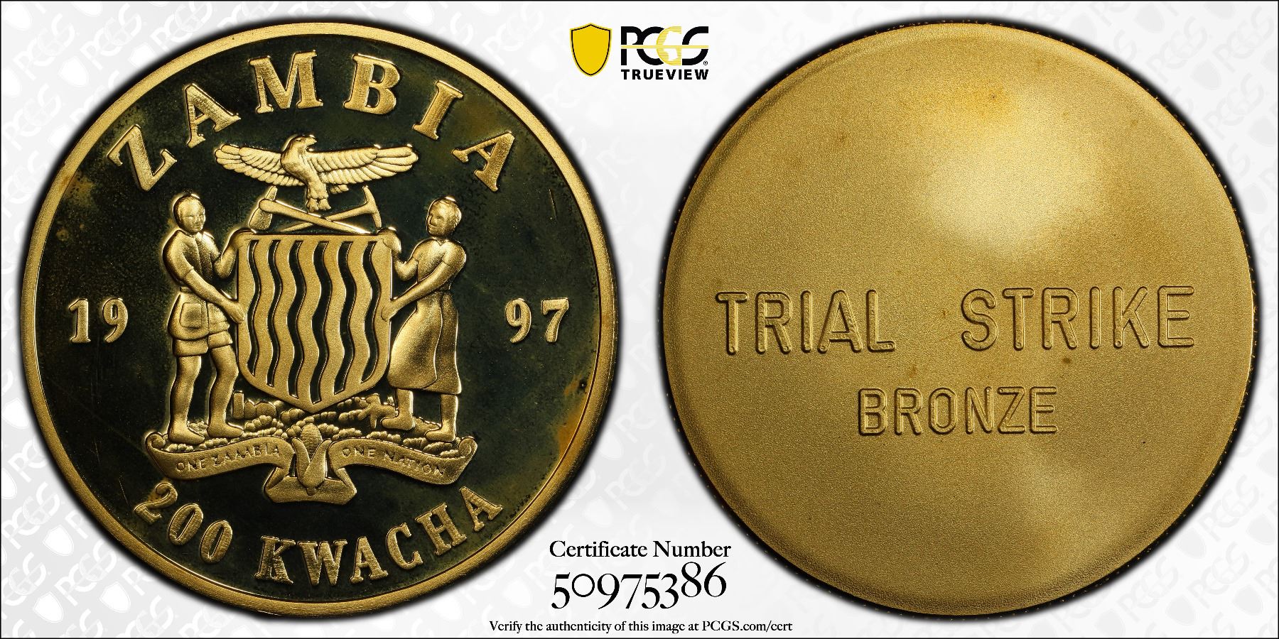 ZAMBIA: Republic, 6-coin proof set, 1997, collection of PCGS-graded 200 kwacha proof trial strike issues: Death of Princess Diana commemoratives including; Cupro-nickel KM-52 obverse & reverse trial strikes in PF-69 CAM and PF-69 DCAM; Silver KM-52a obverse and reverse trial strikes, both PF-69 DCAM, and Bronze KM-52b obverse & reverse trial strikes, both in PF-68 CAM, a very rare modern African set with a mintage of only 50 sets, with original case of issue, set of 6 pieces.