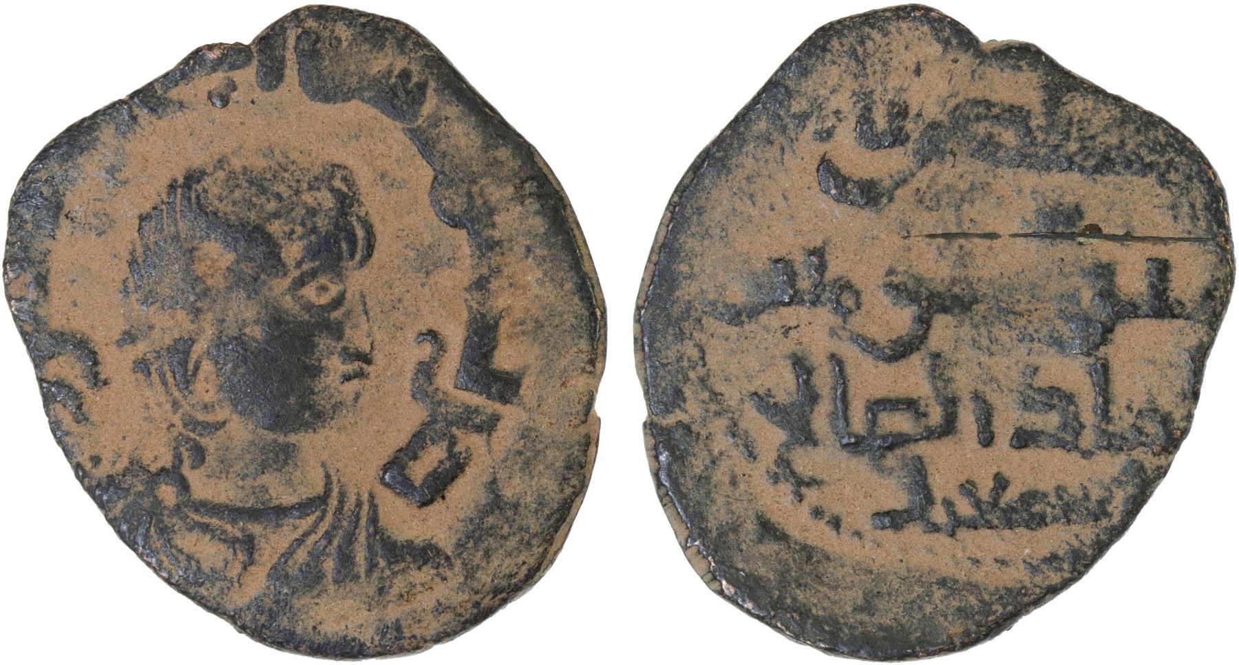 ZANGIDS OF SYRIA: al-Salih Isma'il, 1174-1181, AE fals (3.66g), Halab, AH571, A-1854.1, fourth century Roman style bust right, one-year type struck only at Halab, lovely red-brown patination, VF.