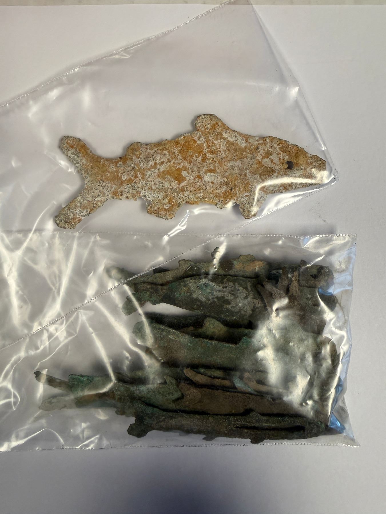 ZHOU: Spring-Autumn Period, 770-475 BC, LOT of 18 'fish money', all cast in the shape of fish with hole for threading (as made), various lengths from 6 to 11cm, most plain, some with scales or foliate lines, a couple with small fracture, made by various "barbarian tribes" (yí) along the Yellow River during the Shang and early Zhou Dynasties; retail value $500, lot of 18 pieces, ex Dr. Dirk Löer Collection. These types are mentioned in Coole, Jen, and other references with ambiguous statements regarding their possible use as money. Their frequent presence in ancient tombs perhaps suggests a funerary purpose.