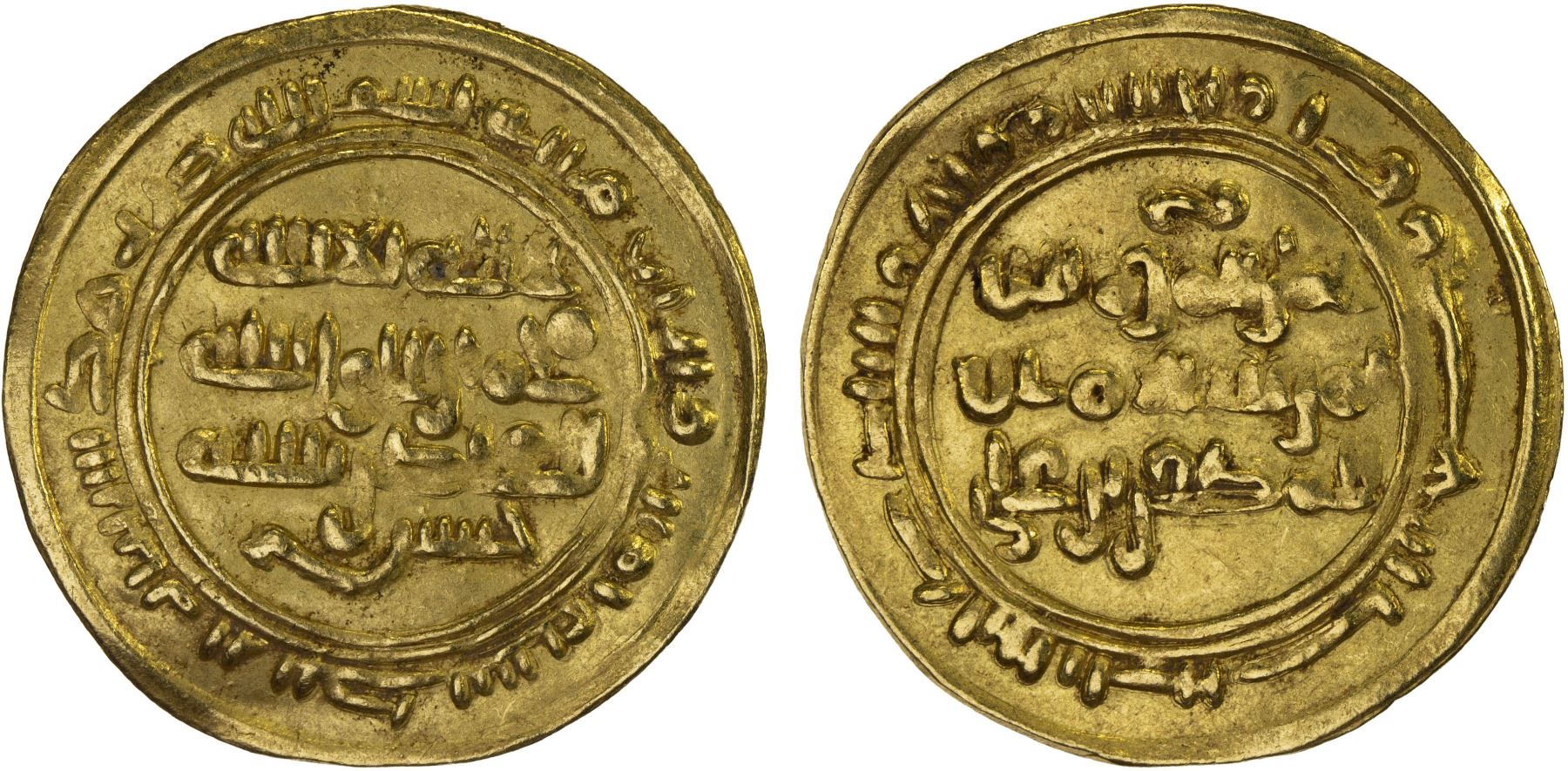 ZIYADID: al-Husayn b. Salama, vizier, ca. 983-1019, AV dinar (2.75g), Zabid, AH405, A-G1072, cf. Zeno-235912, also citing the Ziyadid king al-Muzaffar b. 'Ali and the caliph al-Qadir, bold VF, RRR.