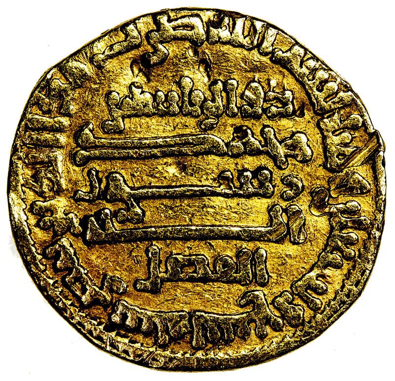 al-Ma'mun (810-833/194-218 AH), AU dinar, A-222.5, citing the Egyptian governor al-Muttalib, al-Fadl, and Dhu'l-Ri'asatayn, scratch & couple nicks on reverse, VF, S.