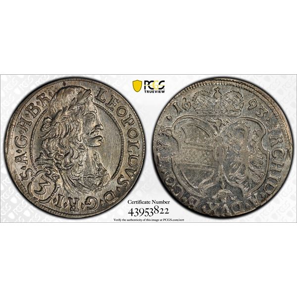 10 - AUSTRIA: Leopold I, 1657-1705, AR 3 kreuzer, Hall, 1693, PCGS MS63Stephen Album Rare Coins