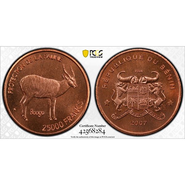 17 - BÉNIN: Republic, AE 25000 francs, 2007, PCGS MS66 RDStephen Album Rare Coins