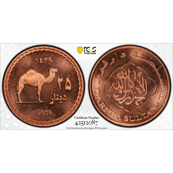 49 - DARFUR: Sultanate, AE 25 dinars, 2008/AH1429, off-metal strike, only 7 minted! PCGS MS64 RDStephen Album Rare Coins